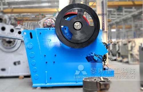 工作時,電動機驅(qū)動皮帶和皮帶輪,通過偏心軸使動顎上下運動,當(dāng)動顎上升時,肘板和動顎間夾角變大,從而推動動顎板向定顎板接近,物料通過兩顎板之間的擠壓、搓、碾等實現(xiàn)多重破碎;當(dāng)動顎下行時,肘板和動顎間夾角變小,動顎板在拉桿、彈簧的作用下離開定顎板,已破碎物料在重力的作用下,經(jīng)顎腔下部的出料口自由卸出。